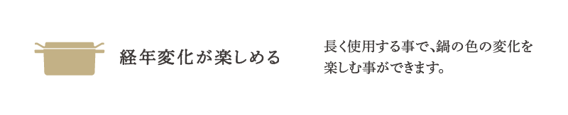 丈夫で長持ちの「tefu-tefu」は、「100年使える鍋」として、経年変化を楽しみながら、普段の食卓の相棒として、あなたの思い出が少しずつ刻まれていきます。